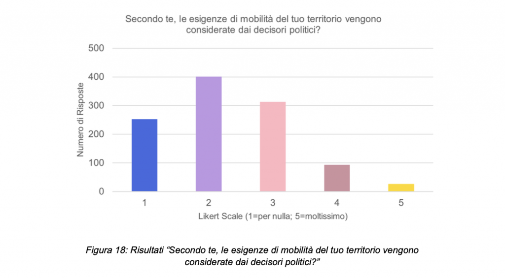 C’è però una frattura che emerge con forza. La maggior parte delle persone non ritiene che le esigenze di mobilità del proprio territorio vengano davvero considerate dai decisori politici. E molti non si sentono parte di una community capace di influenzare un cambiamento reale.